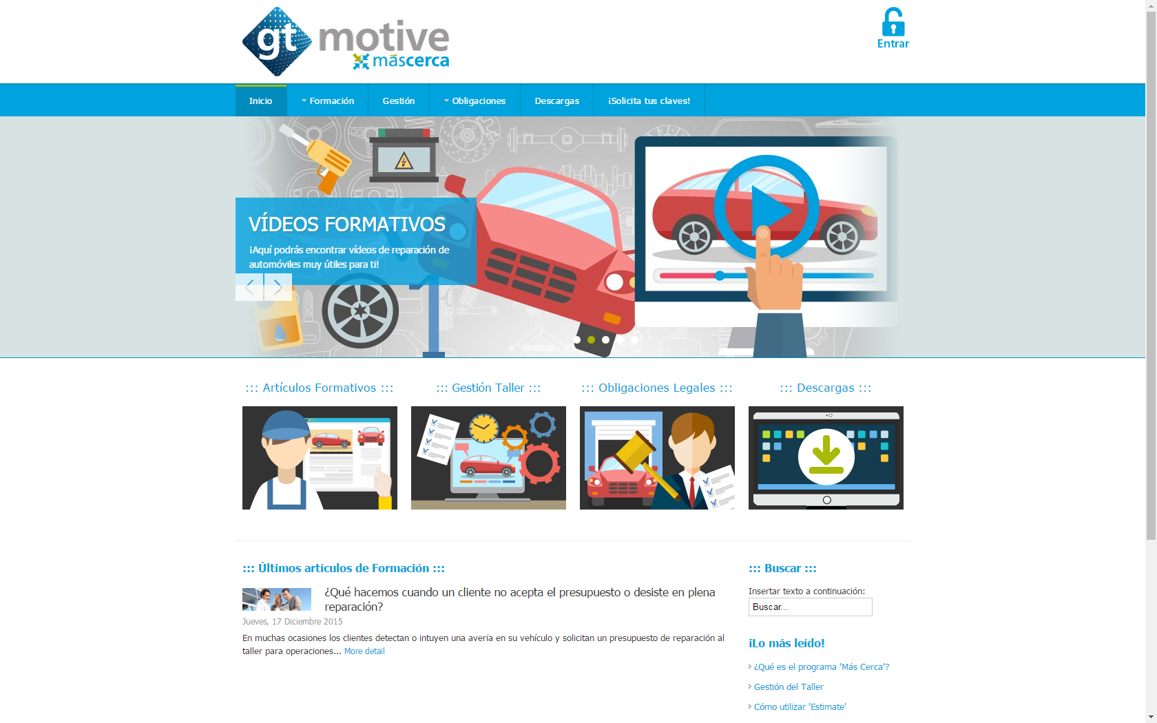 El portal exclusivo para talleres usuarios de soluciones GT Motive ‘Más Cerca’ se ha renovado incorporando nuevas secciones y contenidos. Alrededor de 1.200 talleres han confiado en la web concebida para ofrecer soluciones a los talleres tanto para valorar los siniestros como para elaborar presupuestos.
