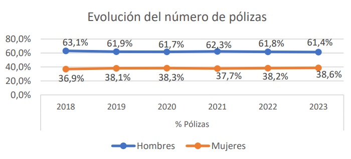 El número de pólizas de Vida de mujeres es 28,8 puntos más bajo que el de los hombres
