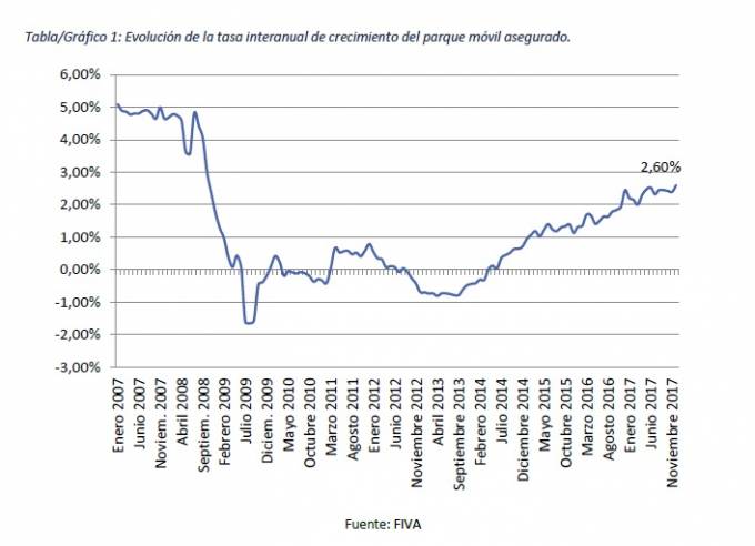 El número de vehículos asegurados crece un 2,60% en 2017