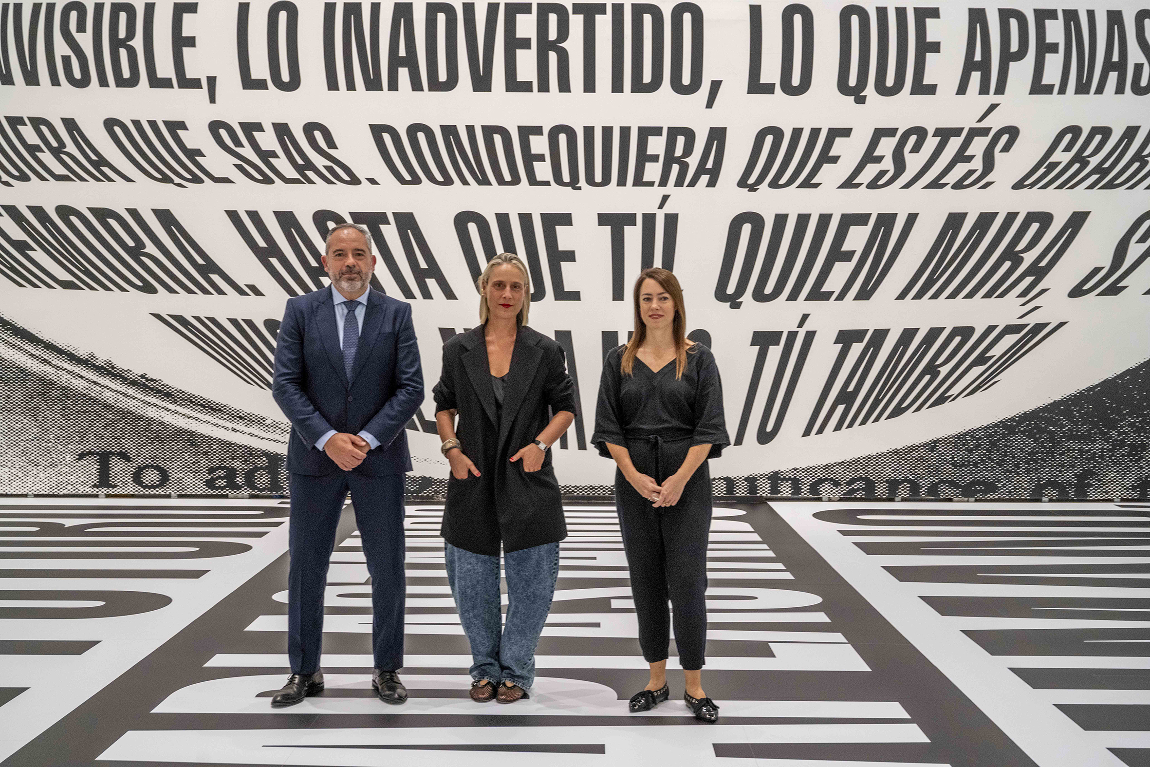 La muestra, patrocinada por Occident, propone una experiencia inmersiva con obras que combinan texto, sonido e imágenes digitales para reflexionar sobre el lenguaje, los medios y la identidad en la era contemporánea.