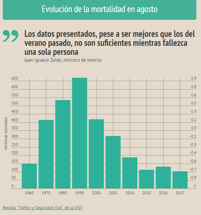 en agosto 103, 28 menos que en el mismo mes de 2015, lo que representa el mejor dato para España desde que existen datos en 1960.