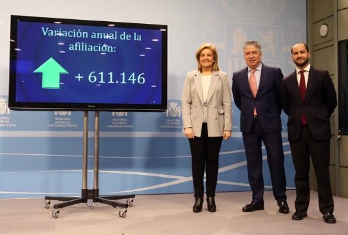 En lo que a creación de empleo se refiere, la Seguridad Social ha registrado un crecimiento de 611.146 personas. La afiliación media a la Seguridad Social termina el año con 18.460.201 ocupados.