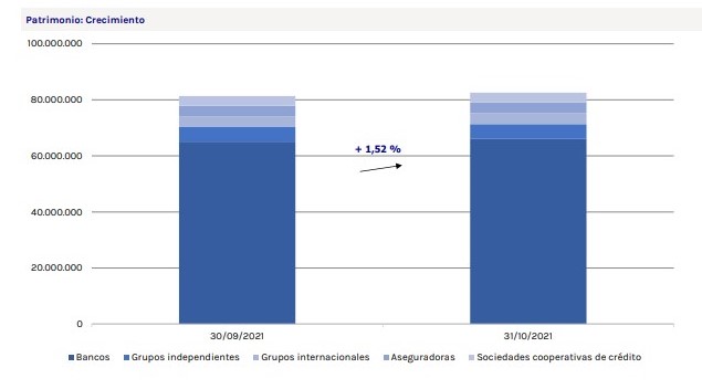 Por tipo de entidad, los bancos registraron las mayores captaciones netas, con 16 millones, seguidos de las sociedades cooperativas de crédito (15 millones) y las aseguradoras (9 millones). En términos porcentuales, son los grupos independientes los que tienen un mayor incremento patrimonial (2,52%), por delante de las aseguradoras (1,91%).