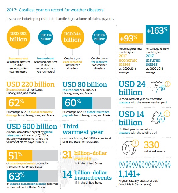 2017 se ha convertido en el año récord de pérdidas económicas por desastres climáticos alcanzando los 344.000 millones de dólares según el informe anual de Aon Benfield, Weather, Climate and Catastrophe Insight: Annual Report 2017.