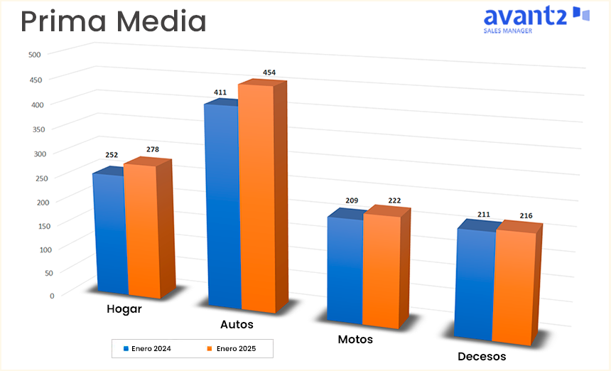 En enero de 2025, la prima media de nueva producción ha aumentado en términos interanuales en Autos, Hogar y Decesos. Así lo ha difundido Codeoscopic tras analizar los datos de Avant2 Sales Manager.