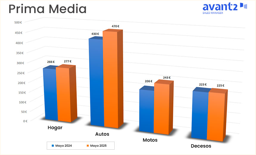En cuanto a los seguros de motos, en mayo de 2025, la prima media se incrementó un18% en comparación con el mismo mes del año anterior.