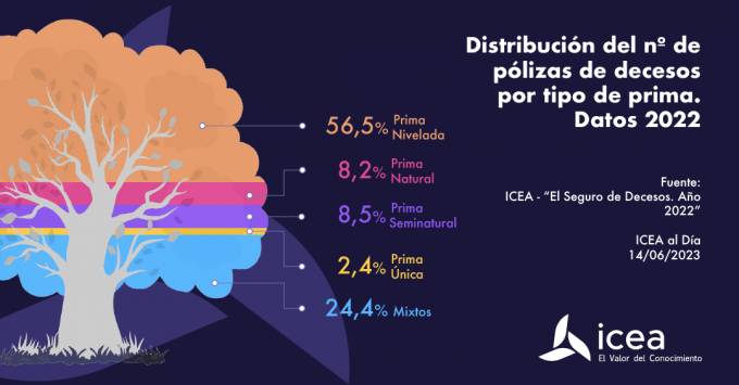 En Decesos, el tipo de prima más más extendida es la nivelada pero las primas mixtas fuero las que más crecieron al cierre de 2022. "Lógicamente la garantía de decesos supuso la mayor parte de las primas (un 82,7%), siendo la siguiente garantía en importancia la de asistencia, que acapara el 9% de la totalidad de las primas", según ICEA.