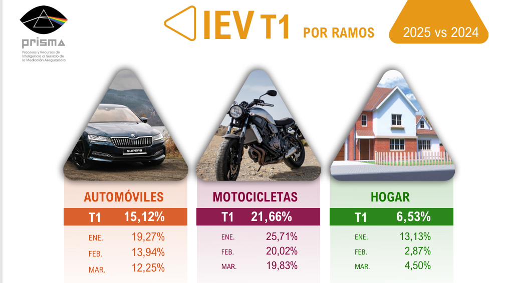 El último informe del Índice de Evolución de Ventas (IEV) realizado por Prisma (ebroker) resalta que las primas de nueva producción entre enero y marzo aumentaron de media un 13,65% en comparación con el mismo periodo de un año antes. El