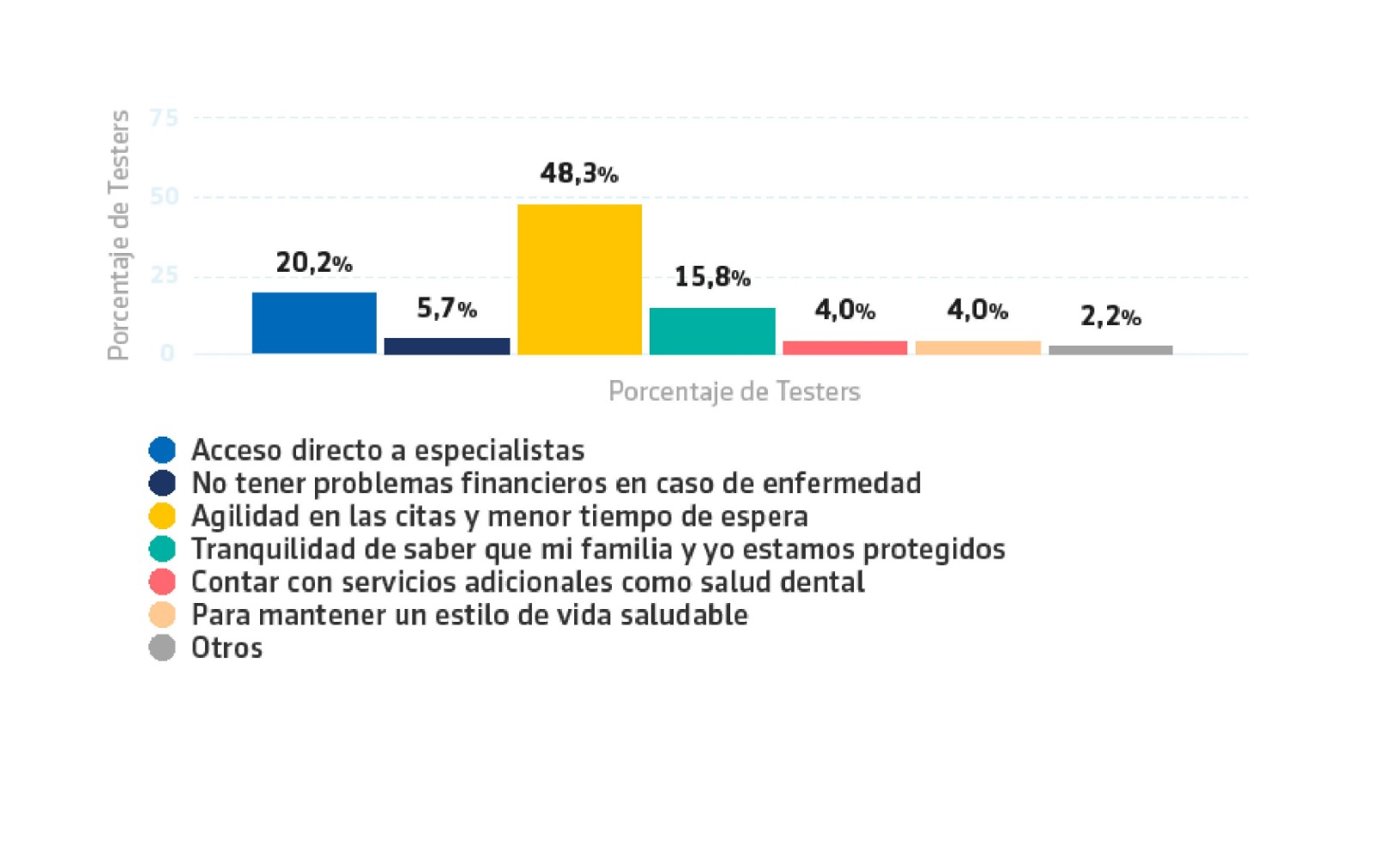 En la misma línea, el acceso directo a especialistas sería el segundo motivo para contratar un seguro de Salud, de acuerdo con el 20,2% de los encuestados. La siguiente razón de peso que empujaría a la ciudadanía a contratar este producto, sería la tranquilidad que supone tener cubiertas las cuestiones de salud en familia, como defienden el 15,8% de los asegurados.