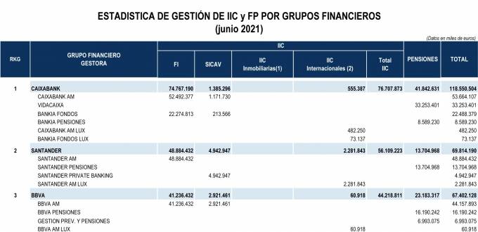 Ranking de grupos en comercialización de IIC y Fondos de Pensiones
