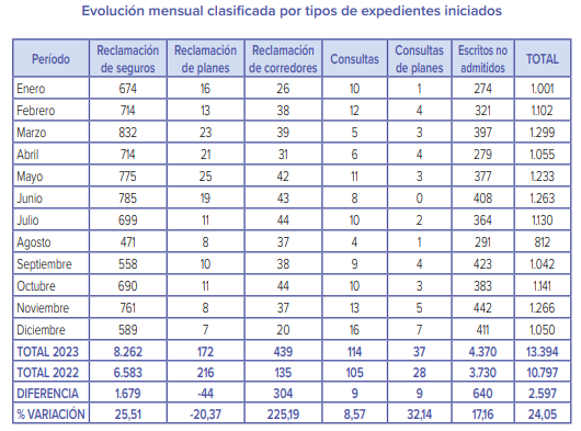 Las reclamaciones presentadas ante la DGSFP aumentaron un 24% en 2023