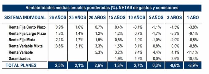 La rentabilidad de los Planes de Pensiones Individuales a un año, en negativo