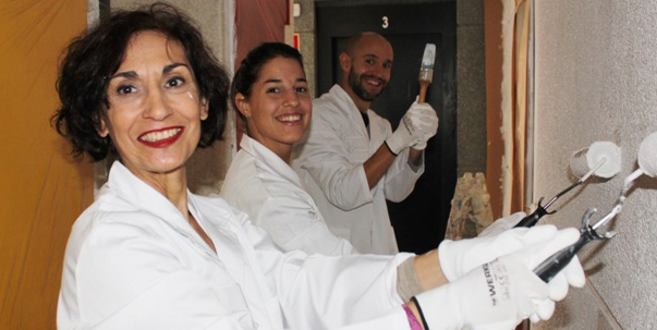 Reparalia ha reunido en Madrid, Valencia y Bilbao a más de 70 voluntarios, entre empleados y profesionales de su red de reparadores, para dar color y mejorar las instalaciones de 3 espacios sociales de Cáritas Madrid, Cáritas Bilbao y Proyecto Hombre. Para el desarrollo de los trabajos, la empresa ha contado con la colaboración de Bruguer, que ha aportado 520 litros de pintura.
