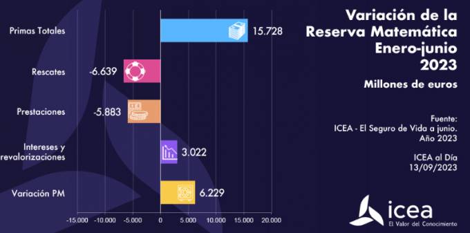 Las reservas matemáticas de los seguros de Vida alcanzaron al cierre de junio un total de 200.042 millones de euros. ICEA destaca que esta reserva ha aumentado en 6.229 millones respecto al año anterior. La subida se debe al aumento por los seguros vinculados a activos que aumentaron 3.009 millones y a los seguros con garantía de interés que se incrementaron en 3.220 millones.