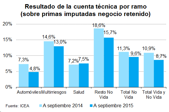 El resultado de la cuenta técnica del sector alcanzó el 8,7% a septiembre de 2015