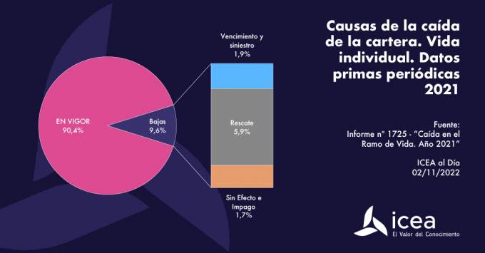 Al cierre de 2021, la retención media de la cartera de seguros de Vida Individual se situó en el 92,2% de las pólizas y el 90,4% de las primas periódicas, según los datos de ICEA. Explica que el impacto de la caída de cartera provoca que un 9,6% de las primas periódicas se anulen antes de un año; supone que la vida media de la cartera de Vida Individual se estima en 12,8 años. La modalidad con menor índice de caída es Rentas vitalicias, con un 2,2% de las pólizas.