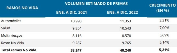 No Vida registró un crecimiento interanual del 5,21% sobre 2021. Salud cerró con un avance del 7% y una facturación de 10.543 millones de euros. En Multirriesgos el incremento se situó en el 5,69%, hasta los 8.578 millones de euros. Mientras, las pólizas de Empresas (en Resto No Vida) alcanzaron los 9.765 millones de euros, un 5,14% más. En Autos, la evolución también fue positiva y mostró un crecimiento del 3,31%, acabando el ejercicio en 11.353 millones de euros.
