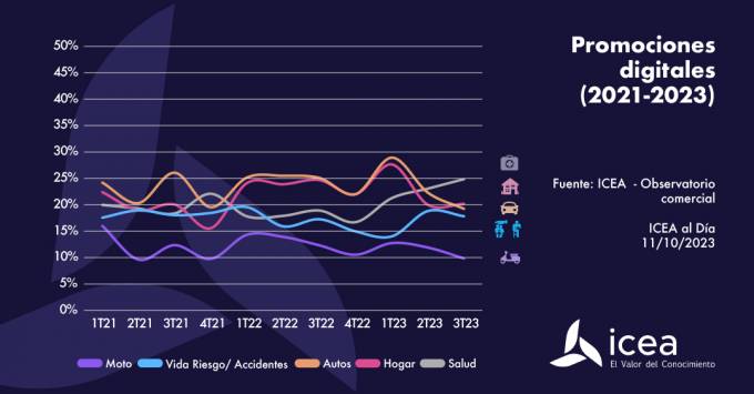 Durante los 9 primeros meses de 2023, el ramo de Salud ha experimentado un aumento de su actividad promocional en medios digitales hasta posicionarse como el más activo en el tercer trimestre. Le siguen Hogar y Autos, ambos con una tendencia a la baja desde principios de año. Cabe destacar también el incremento de la actividad en Vida Riesgo y Accidentes a lo largo de 2023. Toda esta información la ha proporcionado ICEA tras extraerla de su 'Observatorio Comercial'.