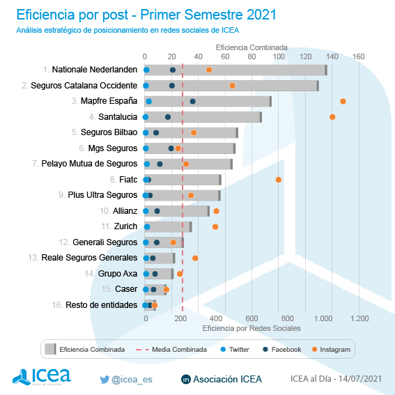 En el primer semestre de 2021, las principales compañías del sector asegurador generaron casi 900.000 reacciones en redes sociales con 31.605 publicaciones, lo que supone una media de 28 reacciones por post, según recoge ICEA en su 'Análisis estratégico de posicionamiento en redes sociales'.