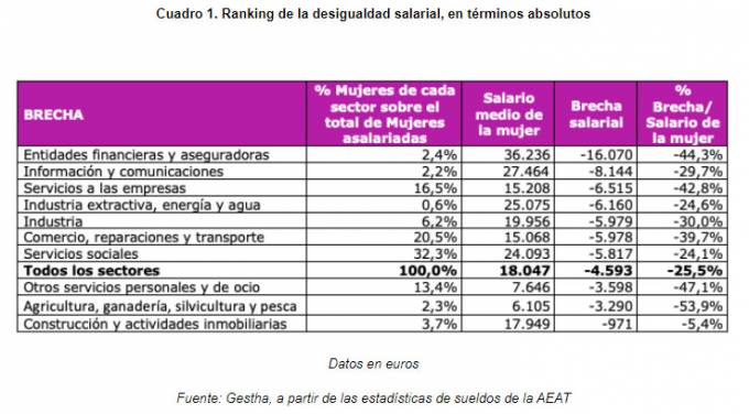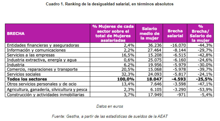 El VI informe 'Brecha salarial y techo de cristal' pone de manifiesto que el sector asegurador junto a la banca sigue siendo uno de los sectores con mayor brecha salarial entre hombres y mujeres. Según estos datos realizados por los técnicos de Hacienda (Gestha) las mujeres cobrarían 16.070 euros menos que los hombres.
