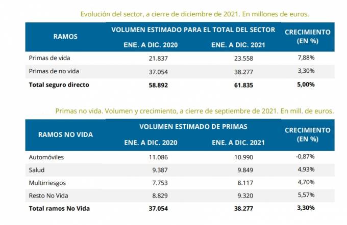 El sector asegurador español obtuvo en 2021 un volumen de primas total de 61.835 millones de euros, un 5% más que el año anterior. No obstante, no recupera los niveles prepandemia puesto que se deja un 3,65% con respecto a 2019, año que el sector ha tenido como referencia.