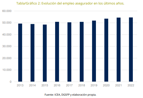 El seguro español registró en 2022 su mayor cifra de empleo en la última década