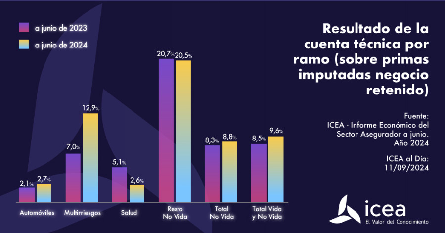 Esta siniestralidad se ha hecho nota en las diferentes líneas de negocio. No Vida ha logrado una cuenta técnica del 8,8% algo menor del 8,3% de junio de 2023.