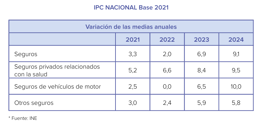 La DGSFP, además de detallar el número de mediadores que ya hemos publicado y la reducción de compañías de seguros, detalla el incremento de los seguros en el IPC. Según estos datos el IPC de seguros ha aumentado en un 9,1% en 2024 "superando la inflación general", apunta el informe. El crecimiento supone un avance de más de 2 puntos respecto a 2023 y más de 7 en su comparación con 2022.