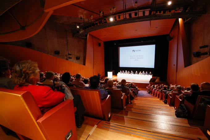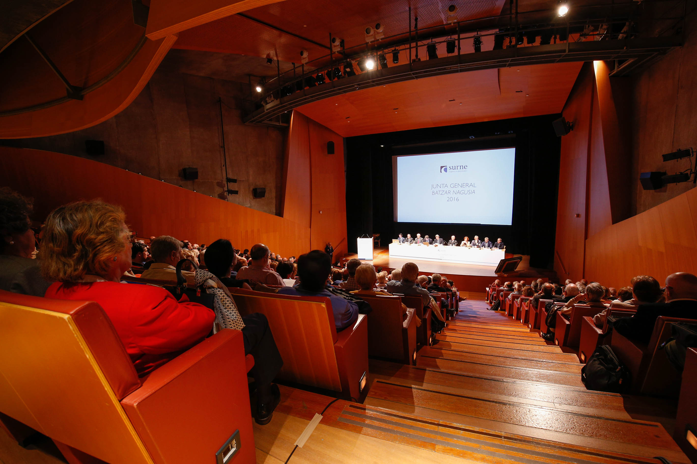Surne ha celebrado su asamblea general en el Museo Guggenheim de Bilbao, a la que han asistido más de 500 personas. Alberto Uriarte, presidente de la entidad, ha presentado los excelentes resultados correspondientes al ejercicio 2016. También han participado Rafael Urrutia, director general, y José Miguel Franco, presidente de Surnepensión, quien ha detallado aspectos de la EPSV.