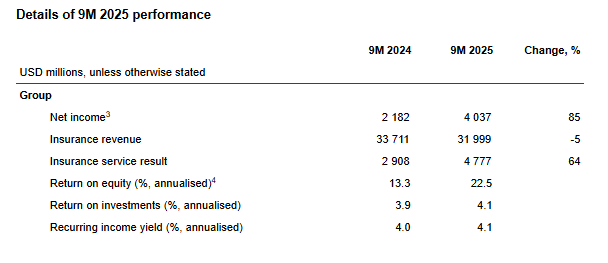 Al cierre del tercer trimestre, Swiss Re ha registrado un beneficio neto por encima de los 4.000 millones de dólares, lo que supone un incremento interanual del 85%. Este aumento se debe principalmente al incremento del beneficio técnico en P&C Re.