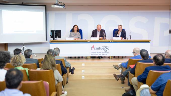 La mesa de debate que se llevó a cabo se centró en los retos actuales de la protección contra incendios y contó con Mirenchu del Valle, presidenta de Unespa.