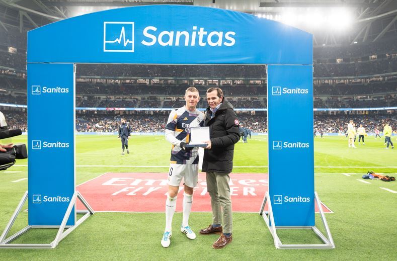 El jugador alemán recibió la placa conmemorativa de manos de Iñaki Peralta, consejero delegado de Sanitas y CEO de Bupa Europe & LatinAmerica, antes del partido de Liga que enfrentó al Real Madrid con el Villarreal CF.