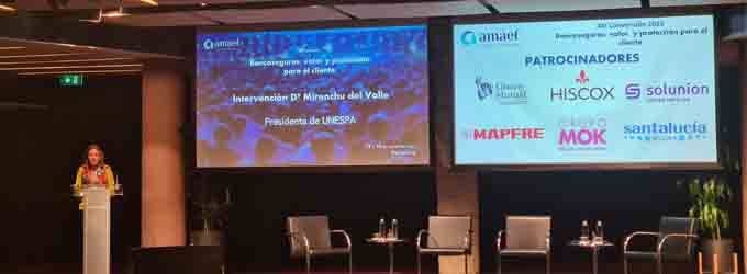 La presidenta de Unespa, Mirenchu del Valle, resaltó en la reciente convención de Amaef la importancia de que todo el seguro vaya unido para defender las necesidades del sector español y hacer más fuerza en Europa. Se refería, concretamente, a la Estrategia de Inversión Minorista donde España presenta un programa unido y con una sola voz, pero también resaltó que "es el camino y la senda para defender los intereses de la industria española", afirmó.