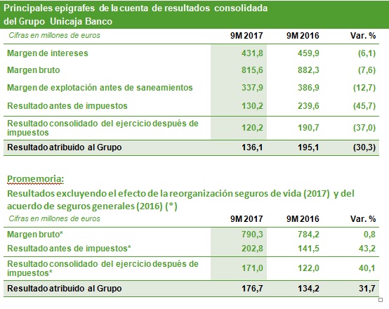 El Grupo Unicaja Banco ha obtenido un beneficio atribuido de 136 millones de euros, que se traduce en una rentabilidad sobre recursos propios (ROE) del 5,6%.