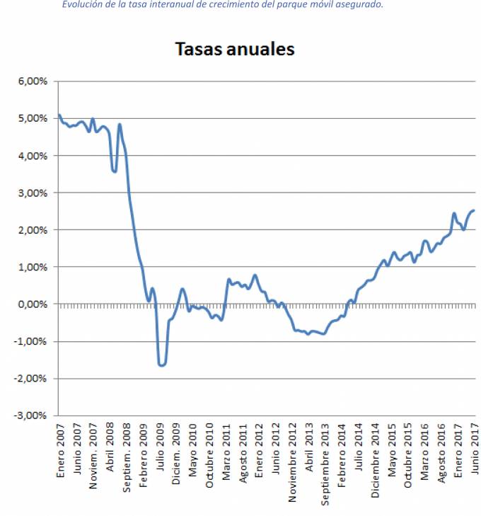 Los vehículos asegurados crecen un 2,52%, cota no vista desde octubre de 2008