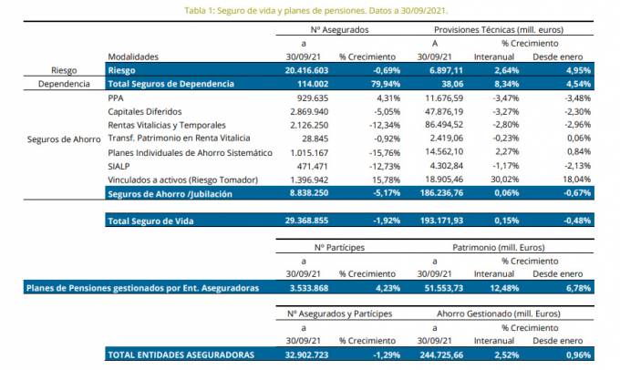 Unespa ha publicado los datos pormenorizados del seguro de Vida del sector asegurador hasta el cierre del 3T. El seguro gestiona un total de 244.726 millones de euros, lo que indica un crecimiento del 2,52% respecto al 3T del pasado año y un 0,96% desde el comienzo el año. El número total entre asegurados y partícipes rozan los 33 millones con una caída del 1,3% respecto al mismo periodo del año anterior.