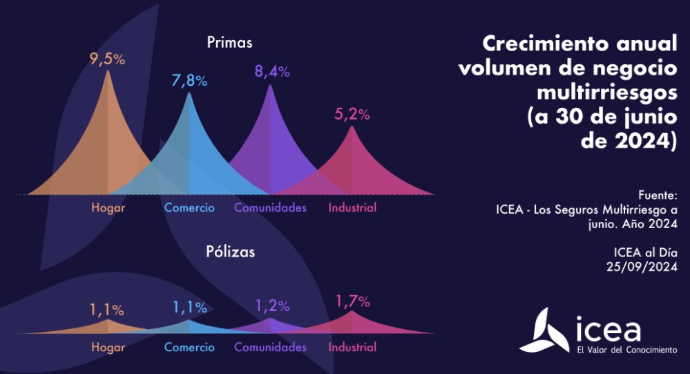 Hogar ha sido la modalidad que más ha crecido en primas hasta el 9,5%, seguida de Comunidades con el 8,4%. Sin embargo en lo que a pólizas se refiere el mayor incremento se ha dado en Industriales que apuntó un crecimiento del 1,7%, según datos de ICEA.