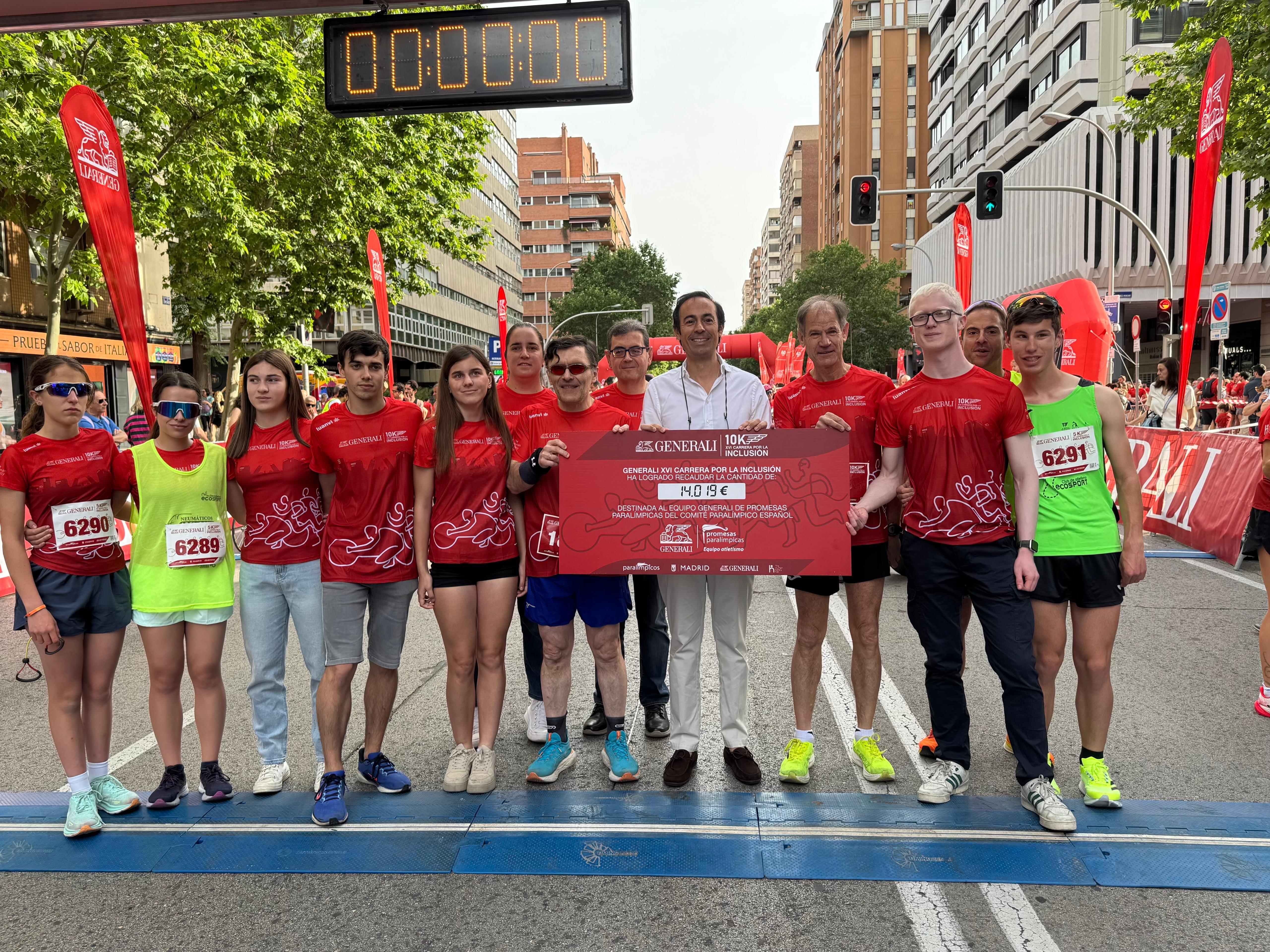 En esta edición, se han recaudado con la compra de dorsales un total de 14.019 euros a favor del Equipo de Promesas Paralímpicas de Atletismo, una iniciativa del Comité Paralímpico Español y Generali. Carlos Escudero, CEO de Generali España, ha entregado un cheque con la cantidad recaudada al presidente del Comité Paralímpico Español, Alberto Durán.