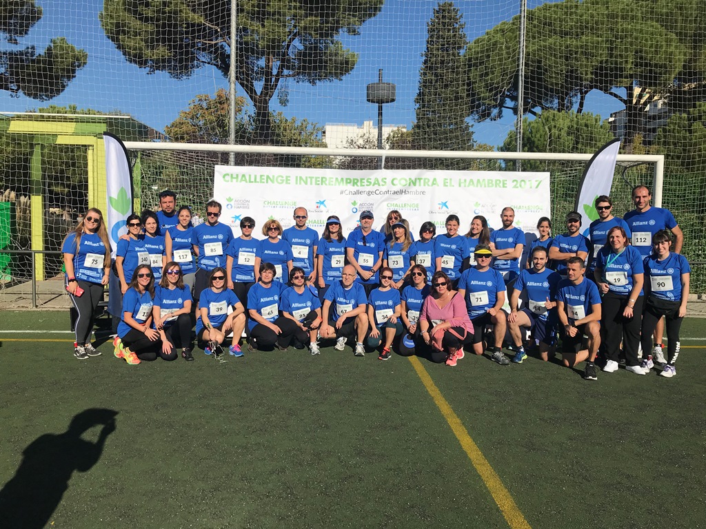 Allianz Seguros participó, por 4º año, en la carrera 'Challenge Interempresas contra el Hambre', organizada por Acción contra el Hambre, que tuvo lugar el 29 de octubre en Madrid. Un total de 27 empresas y sus plantillas se unieron a la edición de este año de la carrera. El equipo de Allianz, formado por más de 100 colaboradores de la entidad, recorrió 1.306 kilómetros, situándose en el 2º puesto de la clasificación general por equipos.