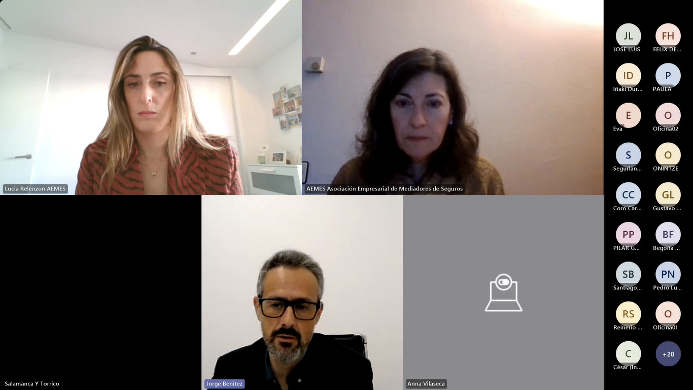 Aemes ha organizado un webinar titulado 'El convenio colectivo de la mediación de seguro: principales novedades', inaugurado por Jorge Benítez, presidente de la patronal. Si bien, la encargada de explicar todas las novedades fue Lucía Relanzón, responsable del Departamento Jurídico de Aemes.