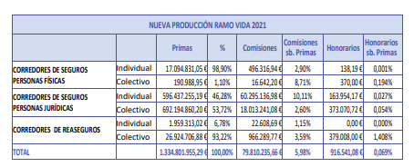 La nueva producción de estos profesionales hasta diciembre del pasado año fue de 3.792,4 millones, un 11,4% más que en 2020 y gran parte de la 'culpa' se encuentra en el crecimiento del ramo de Vida.