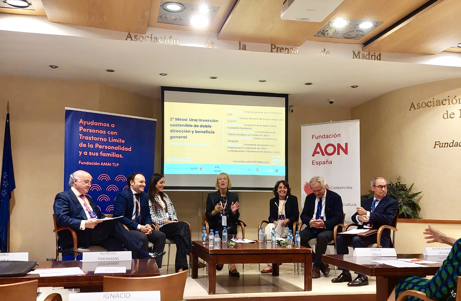 La Fundación Aon ha patrocinado la XII Jornada Técnica sobre Empleabilidad y Salud Mental, organizada por la Fundación Amai TLP. En este encuentro, representantes de grandes empresas y fundaciones hicieron un llamamiento para contratar a personas que padezcan transtornos mentales. Pedro Tomey, director general de la Fundación Aon, animó a las empresas a hacer un esfuerzo para "garantizar el derecho de las personas con necesidades especiales a trabajar en igualdad de condiciones con los demás". Afirmó también que "sólo las empresas comprometidas que realicen inversiones sostenibles, con una cultura que fomente la concienciación entre sus grupos de interés para que sean socialmente activos en la plena inclusión laboral, conseguirán el orgullo de pertenencia de sus empleados y retendrán el talento, que sin duda redundará en un beneficio global, tanto económico como social".