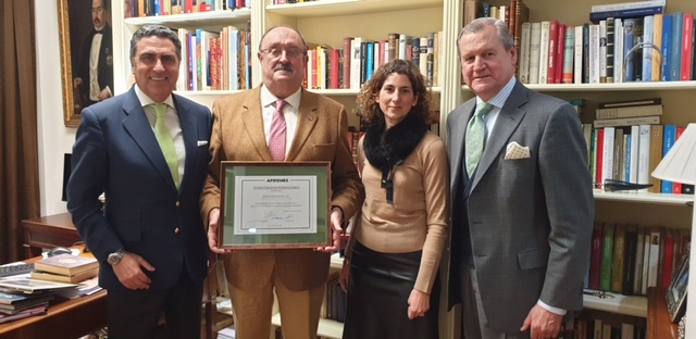 Rafael Guerra recibió el diploma acreditativo de dicha correduría como asociada de manos de Javier García- Bernal, presidente de Apromes, y Juan -Vela, vocal de Relaciones con Aseguradoras.