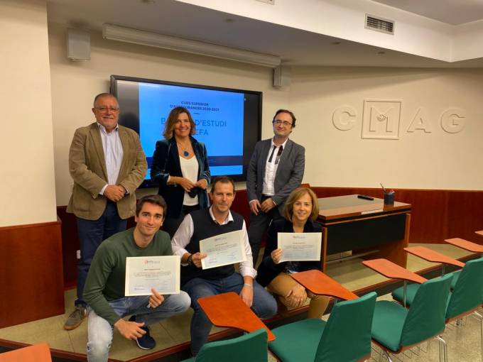 Al acto de entrega de las becas han asistido Maria Magdalena Dalmau, directora de la Delegación Nordeste de Asefa; Jordi Triola, presidente del Colegio de Girona; y David Domènech, director del Curso.