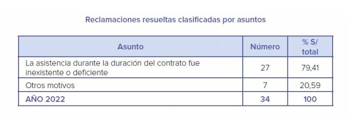 El principal asunto por el que se presentaron reclamaciones, tal y como recoge la Memoria de Reclamaciones de la DGSFP con datos de 2022 se refiere a que la asistencia durante la duración del contrato fue inexistente o deficiente (79,41% de las reclamaciones).