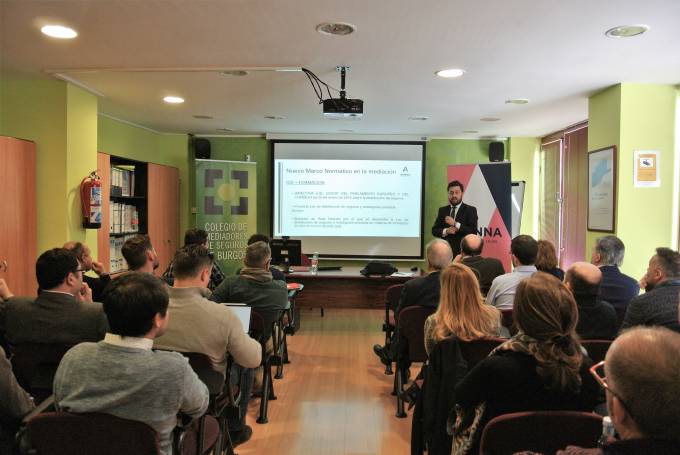 El responsable del Área Legal de Aunna Asociación, Justo Arroyo, ha impartido la charla 'Visión general de la nueva Ley de Distribución de Seguros y Casos Prácticos', en la sede del Colegio de Burgos. La charla, con un carácter muy práctico, analizó el impacto que tendrá la próxima Ley de Distribución de Seguros y a aclarar todas las dudas que la misma sigue generando entre el colectivo de mediadores.