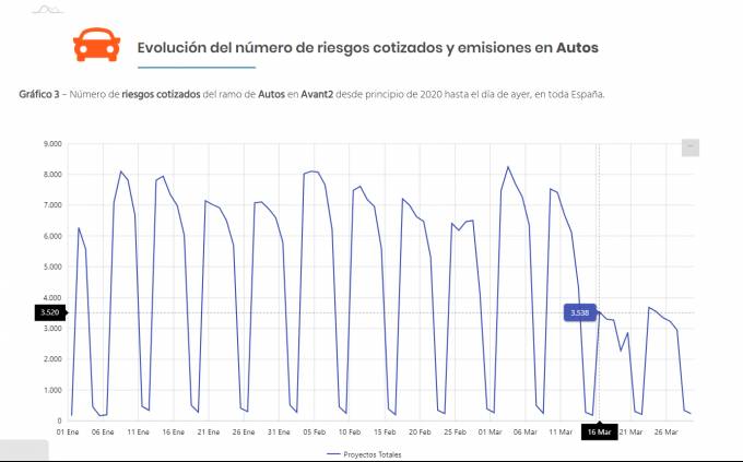 Entre las primeras conclusiones, Codeoscopic destaca que las cotizaciones han caído un 51% desde que se decretó el estado de alarma por la rápida expansión del coronavirus, mientras que las emisiones de pólizas han experimentado un descenso cercano al 52%.