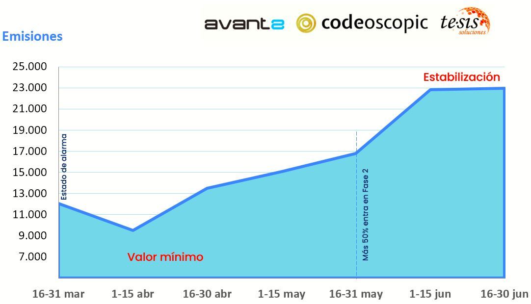 Avant2 recupera los niveles de emisión de pólizas de inicios de año. El multitarificador de Codeoscopic emitió casi 23.000 pólizas de Autos, Hogar y Motos en la segunda quincena de junio y cierra el mes con una marcada estabilidad, muy cerca de las 24.000 emisiones de la segunda quincena de enero.