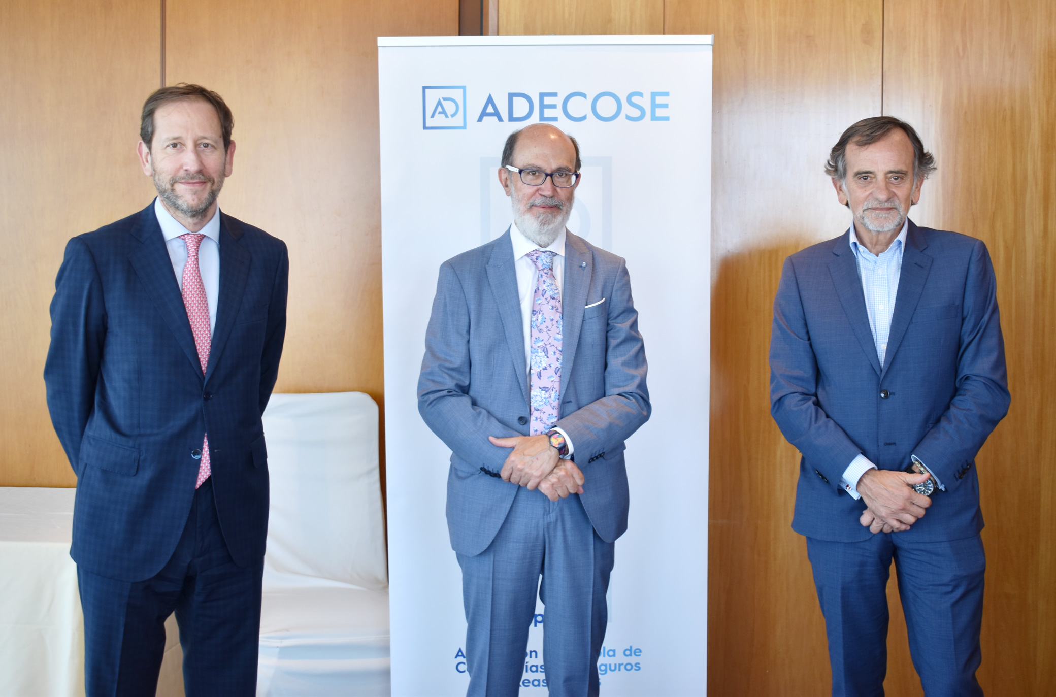 José Boada, ex presidente de Pelayo, y su actual presidente, Francisco Lara, han asistido al almuerzo mensual de la junta directiva de Adecose para intercambiar información sobre el sector asegurador.