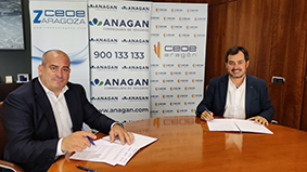 Los presidentes de CEOE Aragón, Ricardo Mur, y de la Correduría Anagan SXXI, Alberto Sáinz, han firmado un acuerdo para potenciar el aseguramiento especializado entre las empresas de la región. Anagan articulará el asesoramiento y mediación en productos y servicios aseguradores para las confederaciones y sus empresas asociadas. Entre las áreas principales de servicio a las empresas, las acciones del acuerdo incidirán en la Responsabilidad Civil tanto para empresas y autónomos como para directivos y consejeros, los ciberrriesgos – con creciente incidencia en el tejido productivo - y los riesgos medioambientales, además de los multirriesgos y seguros personales.